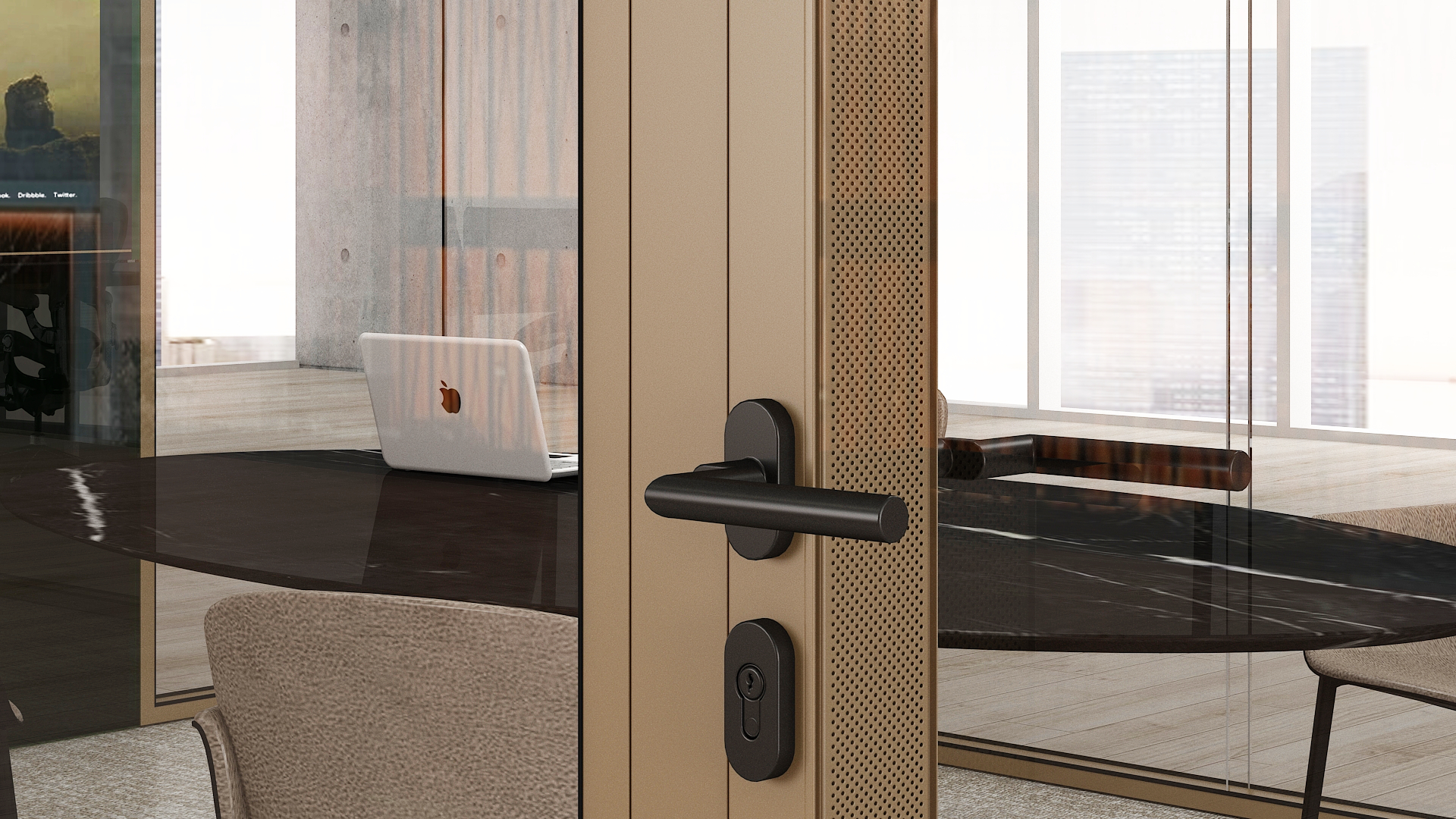 - Avec cette nouvelle porte à cadre double vitrage, Maars apporte une innovation unique au secteur : la combinaison d’une acoustique de classe mondiale, de modularité et de liberté de conception.