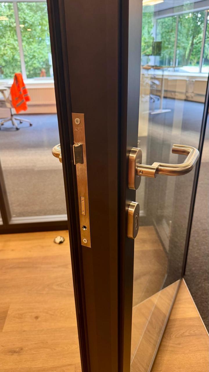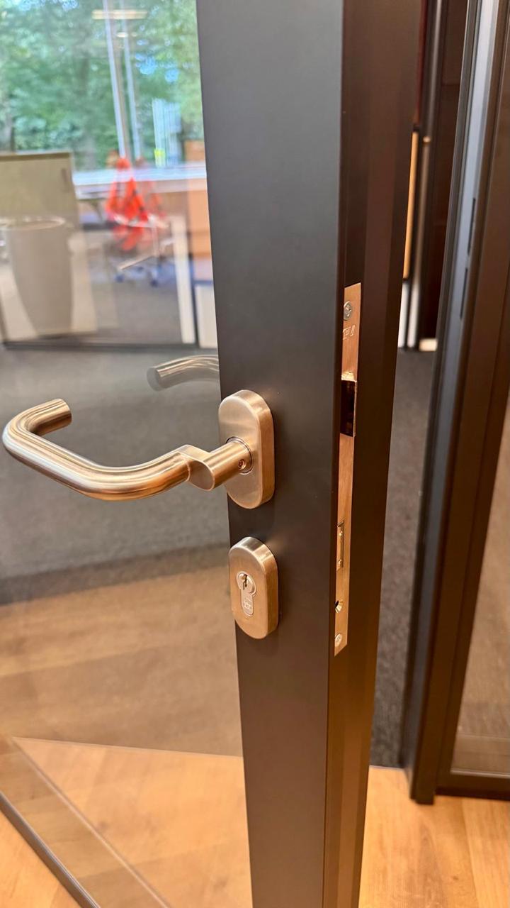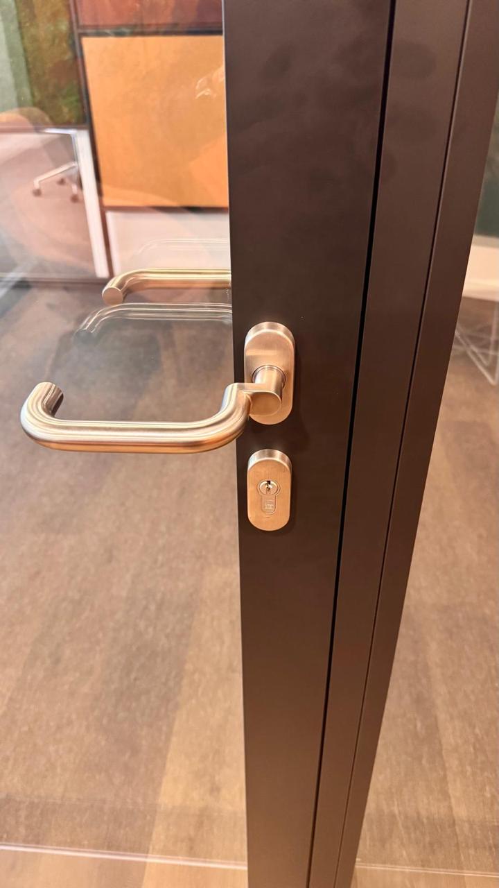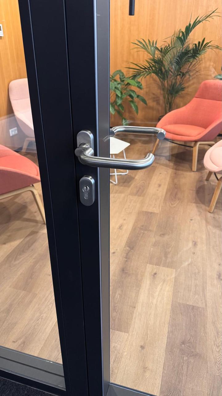 Portes simples ou doubles, vitrages de confidentialité, panneaux techniques, serrures électriques et un large choix de finitions permettant une flexibilité totale des projets.