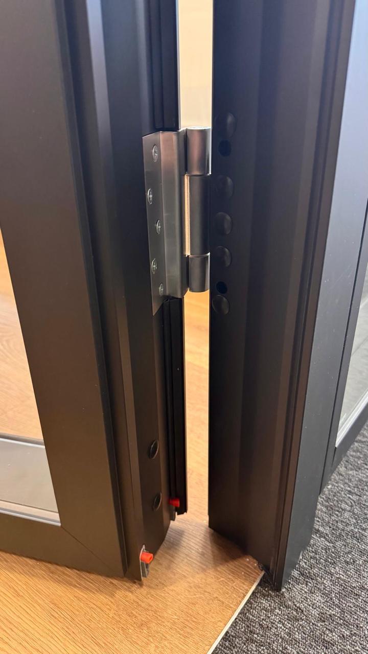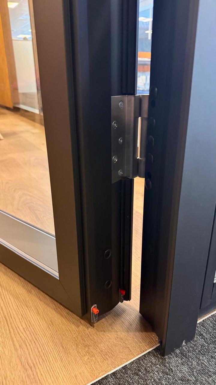 Fabriquée avec des profils en aluminium de haute qualité, du verre feuilleté acoustique et de la quincaillerie de précision, incluant des charnières réglables en 3D, des seuils automatiques et des systèmes de fermeture testés.